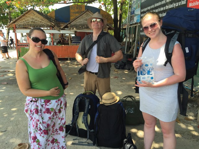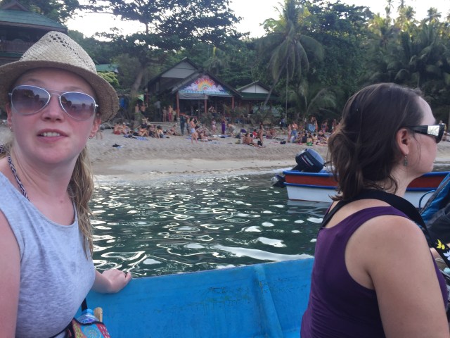 We took the ferry from Koh Samui to Haad Rin, the site of the infamous full moon parties. It was a steaming hot day (as always) and we all had big bags to drag or packs to carry – except for Charmaine with her sore shoulder. Sledge carried her bag and his everywhere we went, which was extremely kind of him.