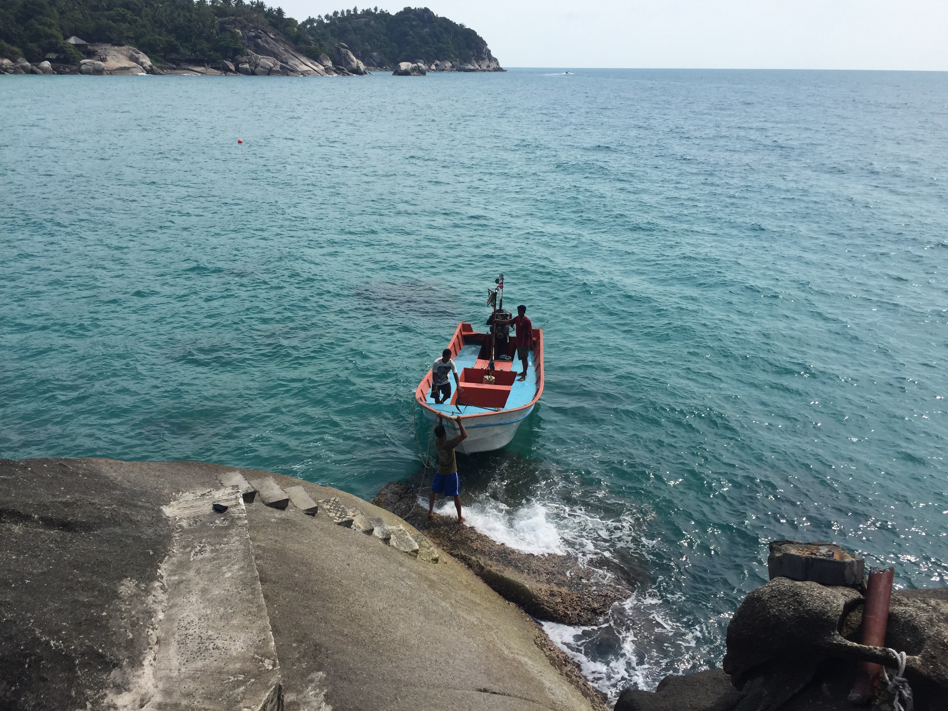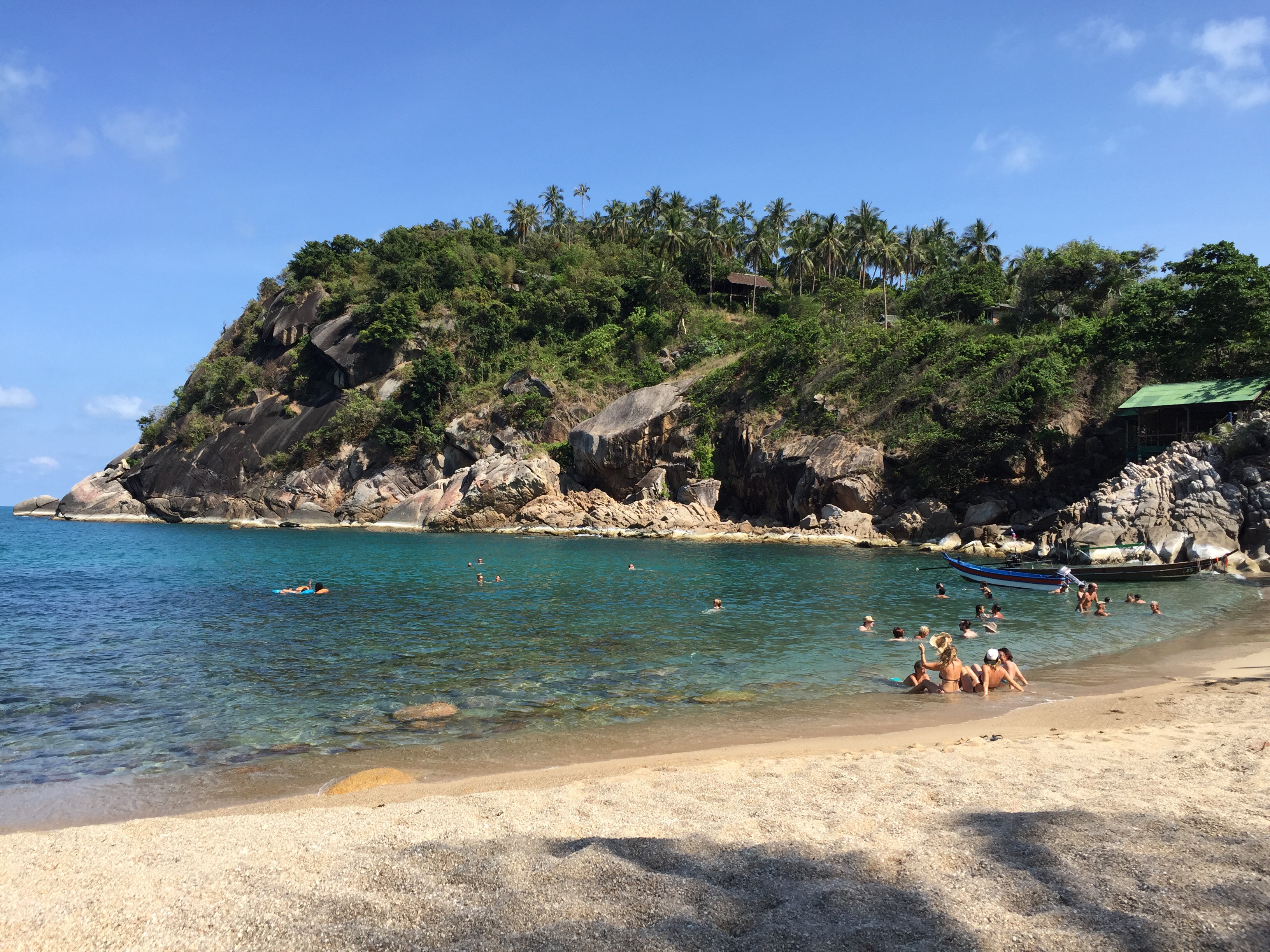 I can totally see what about this place appeals to people. It’s cheap, the crowd are interesting and young, there’s no sense of commercialism and the water is beautiful – pure aqua and super warm, with few rocks or seaweed. There was something in the water that did bite or sting though – we never really figured out exactly what it was, whether spores or bugs, but nearly everyone felt it even though it left no mark. After a few days the lack of aircon didn’t matter and I got used to the Indian-style seating (those triangular pillow/cushion things) and never feeling very clean, but I think it just wasn’t the right time for me to enjoy a place like that. It’s the kind of place people go to escape reality and party, whereas I was on a short timeline and wanted a comfortable bed and things to do. A few of us decided we’d rather book somewhere nice in Koh Samui, so Luke found an Airbnb place online, and after our four nights were up, we took a taxi boat then the ferry and headed back to the bigger island, waving goodbye to the larger part of our crew.