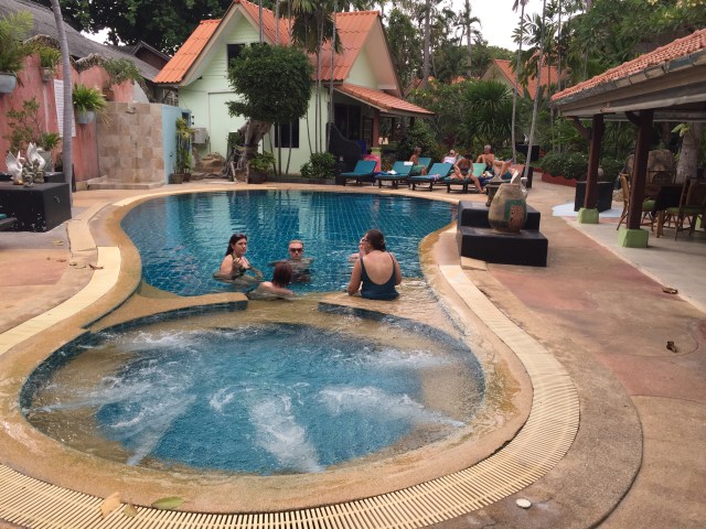 The place was nothing fancy, basic little bungalows with ensuites and aircon, a pool, bar and restaurant right on Chaweng Beach (if you’re curious, I think it was about $40 AUD a night). Sorting the rooms took a bit of time but then we all jumped straight in the pool and set about enjoying the happy hour prices at the bar and relaxing in the sun.