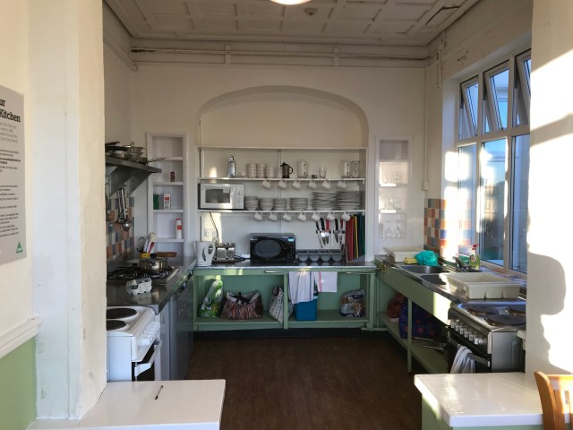I had been lying on my bunk, casually reading, when she came in and immediately leapt up onto the wide windowsills and tried to open all the windows to their full extent “I get so hot you see! My head just boils! It’s a medical condition I have!” (Menopause, I assume) “And these places! You can never open the windows properly because of OH&S! It’s SO HOT,” I gazed bemusedly at this as the weather was about 14 degrees and I commented that, being Australian, I perhaps didn’t feel the ‘heat’ in the same way. Cue ten minutes of her opinions about Australia and Australians (mostly positive) and relating her trips to Australia etc etc. then she started asking me about the light fittings. “When you turn the lights off at night, are these lights green?”