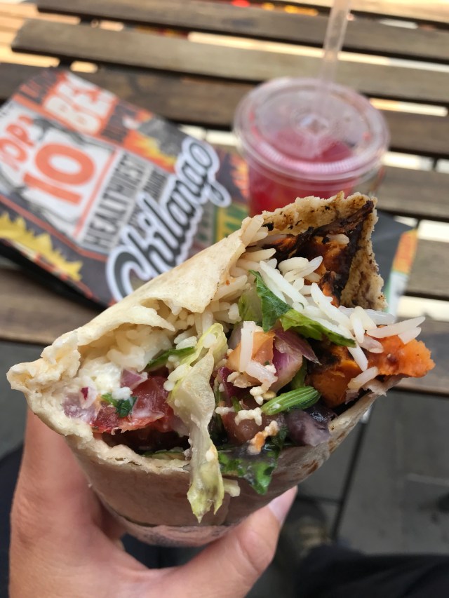 First time was a Mexican place in the financial district. The sweet potato for my burrito took about ten minutes to prepare and so they gave me the burrito and a drink for free. I wrote them a really nice TripAdvisor review.
