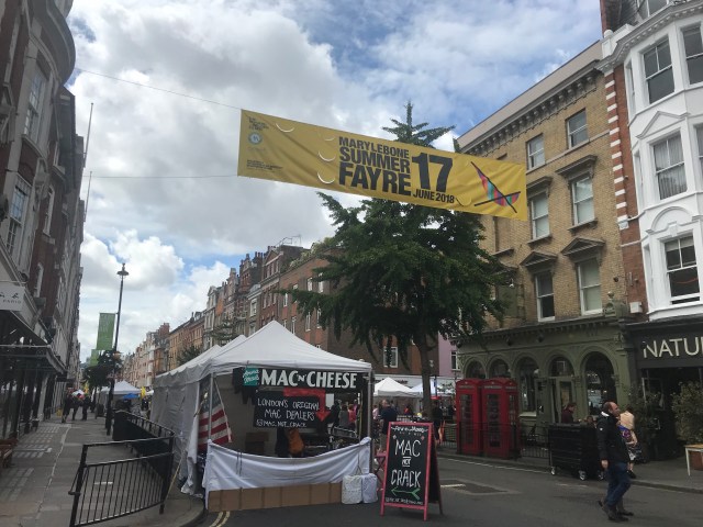 I like browsing markets. I stumbled on the Marylebone Summer Fayre which, if you don’t know London, is a super posh area so the festival had an opera singer and oysters and champagne stalls along with the other, more normal, stuff. I ate some amazing middle eastern food and watched people salsa-dance for a while.