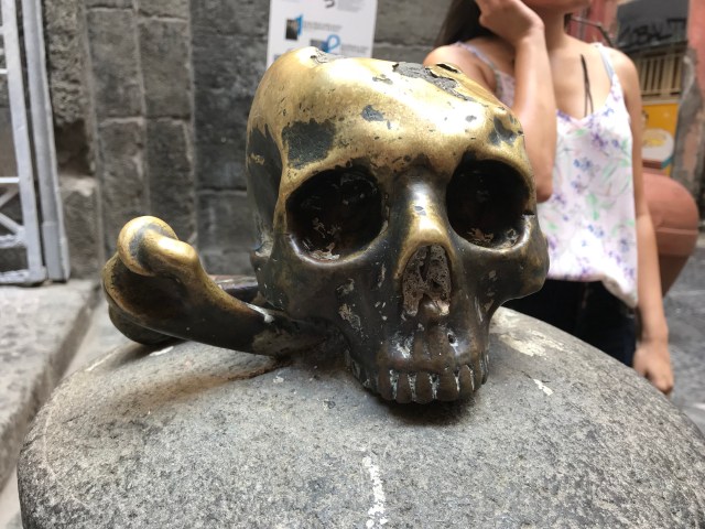 Apparently she’s the ‘good’ character so you touch her nose for luck. Mario explained that Neopolitan Catholics are very superstitious, which makes absolutely no sense to me – if you believe God’s in charge shouldn’t that make you less worried about bad luck? Unless you think that God’s a tricksy fellow who likes to catch people out with tests that he never properly explains, in which case it seems like God’s not really on your side at all. Very confusing.