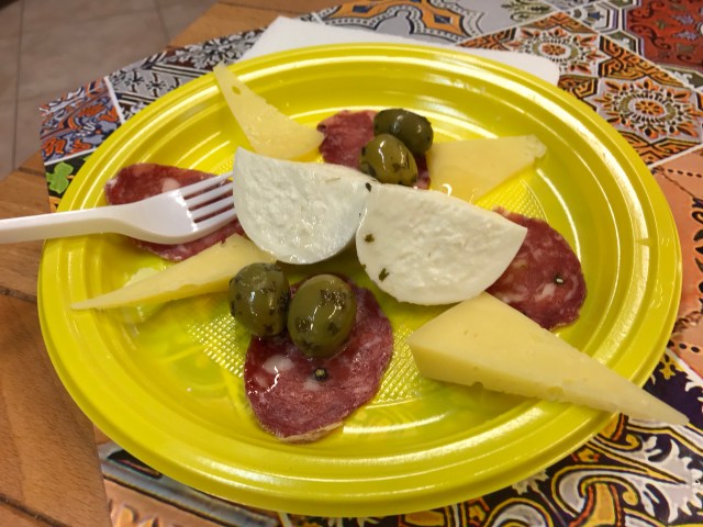 First sit-down stop was a deli and a glass of wine with a plate of antipasto.
