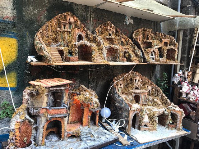 Locals add to their nativity scenes each year, often creating little villages over time. The makers of theses pieces have gone far, far beyond the items related in the Bible and not only can you buy an electrically-operated pizza maker, working mill, washerwoman or farmer for your village, you can buy a statue of Maradona or any member of the British royal family. It’s insanely charming and most of the pieces we could see were super cheap too. I might go back ;-).