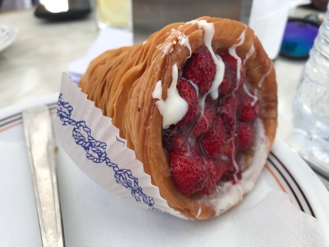 Finally it was time for a small dessert and coffee if we wanted it. We stopped at Gambrinus Cafe on the huge Piazza del Plebiscito. I had a pastry with layers of cream and tiny wild strawberries (called a Matilda if you’d like the same) and Luke had a rum baba and the tiniest coffee I’ve ever seen.