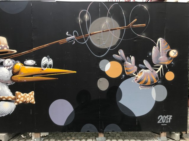 After all that heavy food we wandered around town and admired a work site hoarding that had been painted beautifully by local artists.