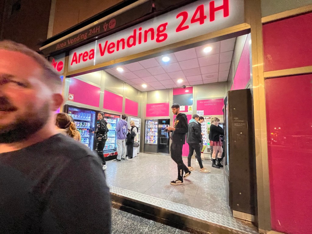 The cafe was next to a vending machine store that had everything from chips to fishing tackle.