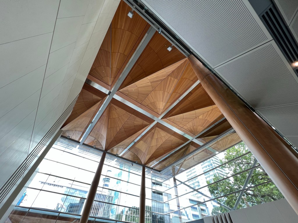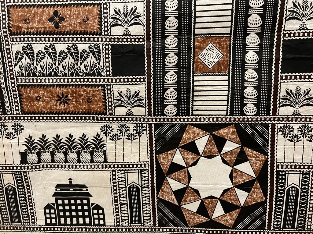 The walk to the gallery wasn’t far, although mostly uphill, and the front of the building has a beautiful portico of wood. We checked our bags, noted the ‘free wifi’ sign and went for a wander. In the gallery there was a group of Māori women doing a live demonstration of printing on fabric and singing.
