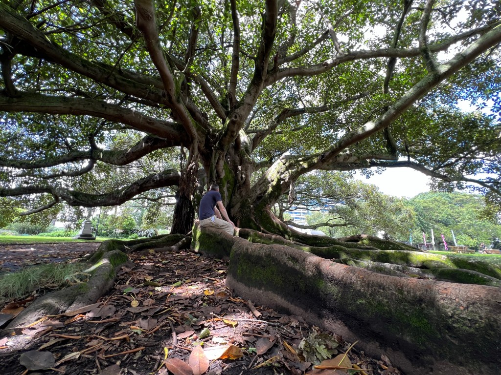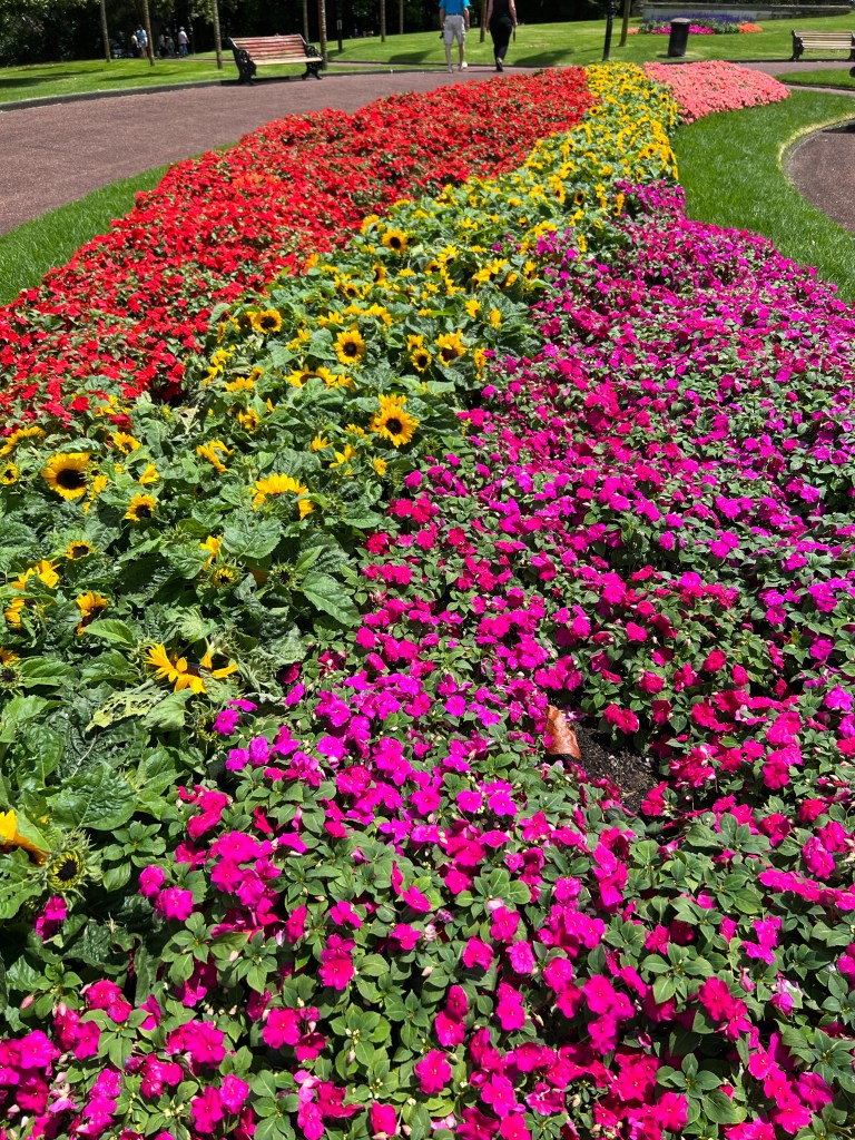 After the gallery we took a walk through the park behind the building and admired the huge Morton bay fig trees, and bright flower beds that contained many impatiens and miniature sunflowers.