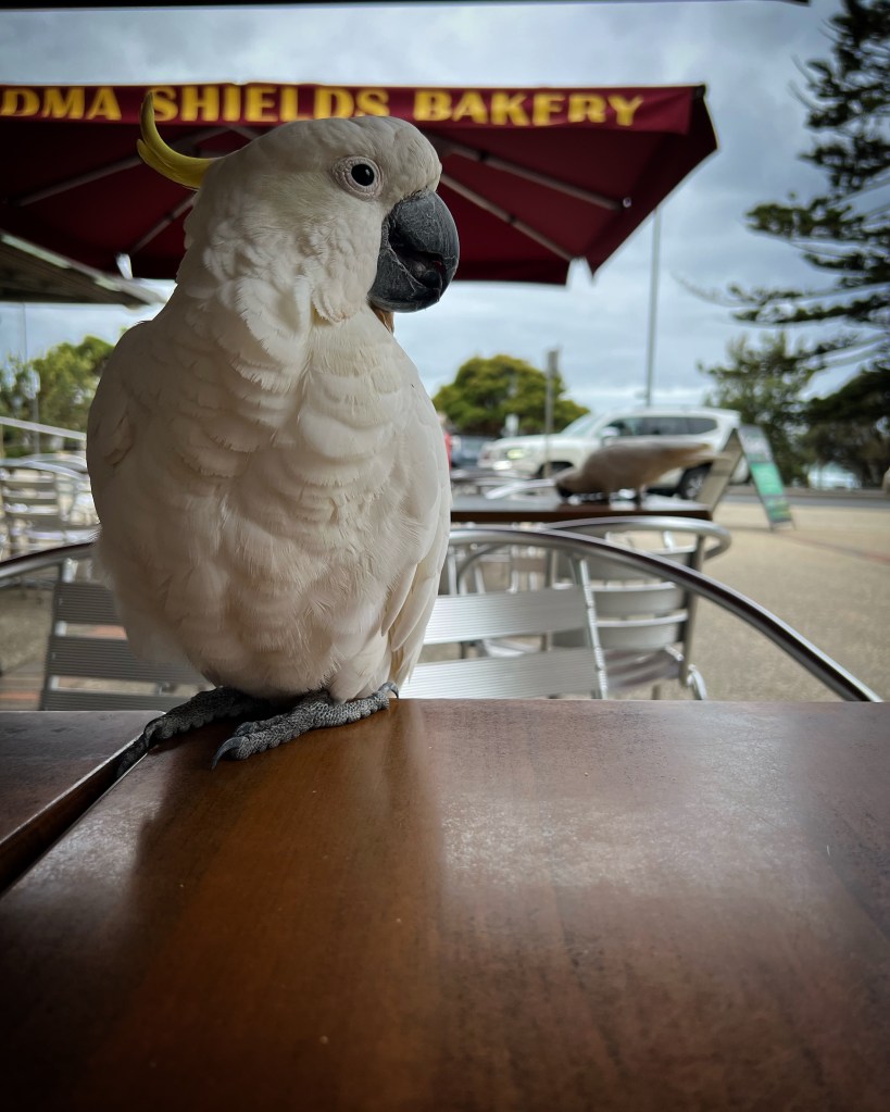 The third winery of the day was extremely generous with their tasting selection and we ended up ordering a mixed case sent home. In their vineyard I saw the biggest flock of black cockatoos I’ve ever seen – at least 30. At home we get the ones with yellow stripes under their tails, but these had white stripes.