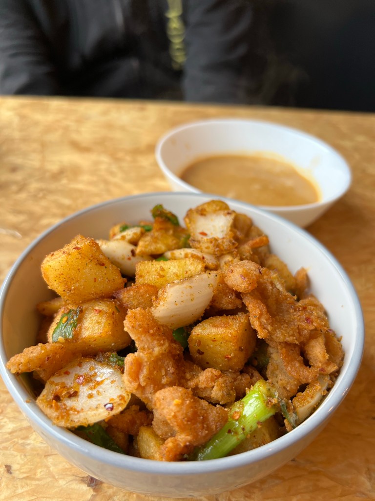 However things were not as we had anticipated – a DJ was playing extremely loud music indoors and LASA, one of the food trucks lining the walls, was giving away free servings of their spice bags. Unfortunately whoever was making them had doused them in chilli flakes so we left it unfinished and moved outside.