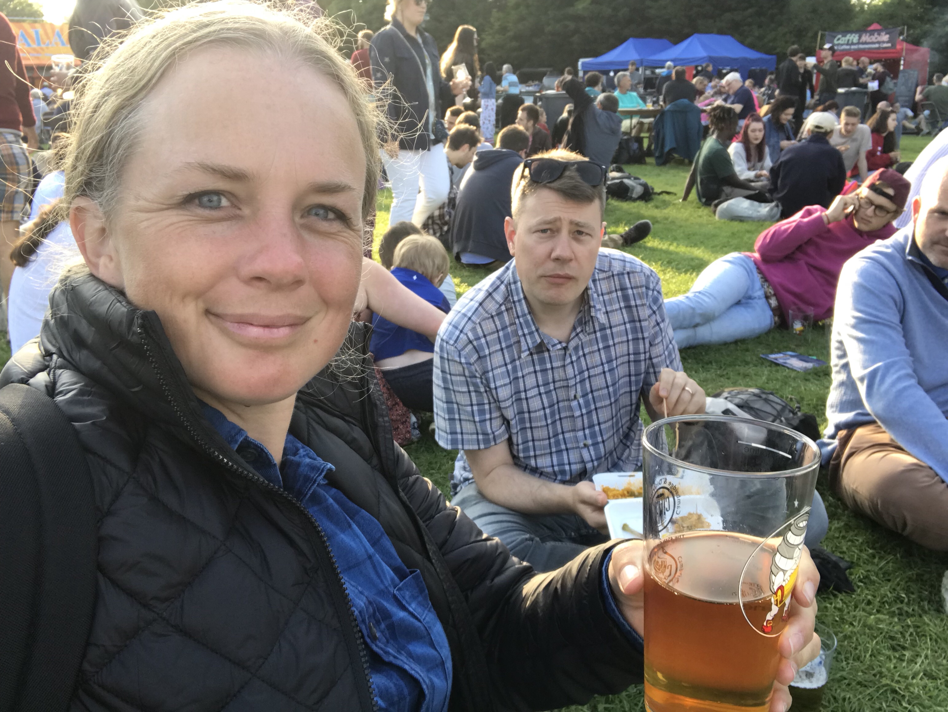 I washed my hair then went out to sit in the sun in the beer garden. Earlier in the morning I’d had a chat to a lady from Montreal and her partner and then they (and their son) asked me if I’d like to join their table in the beer garden as I was sitting alone.