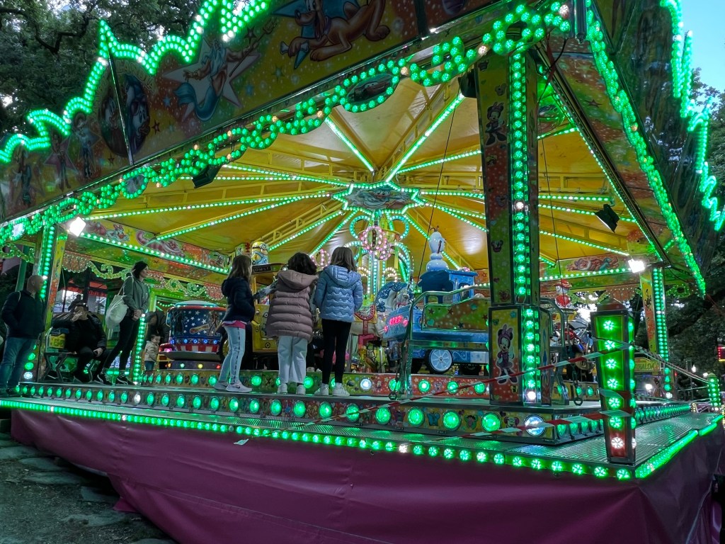 Drinks in several squares.There was an astonishingly loud funfair happening in a park.
