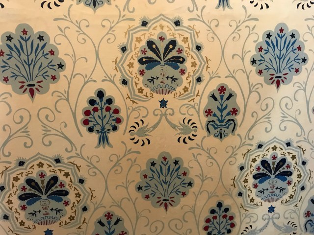 The boat dropped me off at Brantwood, which is almost directly opposite Coniston on the other side of the lake. It’s a group of buildings where John Ruskin spent the last few decades of his life. He was a great thinker, writer, artist, poet… basically a Victorian renaissance man. He went mad in his later years and it sounded a lot like bi-polar to me. The video introduction, that the man at the front desk insisted we watch, was a bit odd. Apart from having weirdly dramatic synth music playing over the top, it completely neglected to mention any female or non-famous person’s presence in JR’s life. I came away wondering if he’d ever married, which of course was a tip-off that his relationship was scandalous and not entirely happy. The gift shop had lots of books on his wife and her achievements but I didn’t investigate. Really, I was here for the gardens and wallpaper.