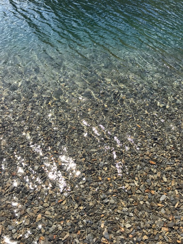 The water was so inviting that I took off my shoes and socks and hobbled a little way along (some of the stones are a bit sharp) and was surprised at how warm the water was.
