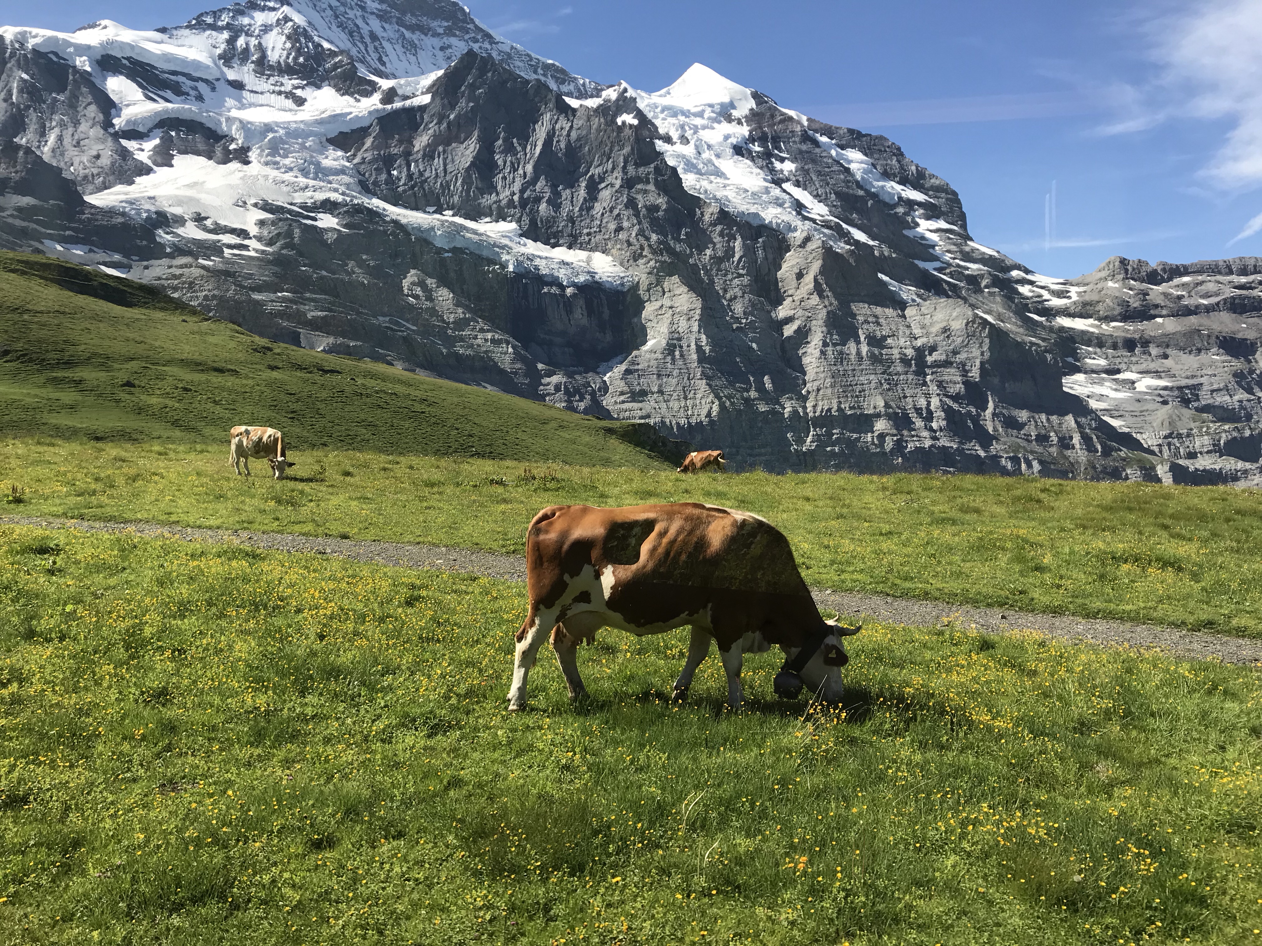 The train from Lauterbrunnen to Kleine Scheidegg was extremely scenic with little Swiss cottages and cows dotting the alpine scenery.