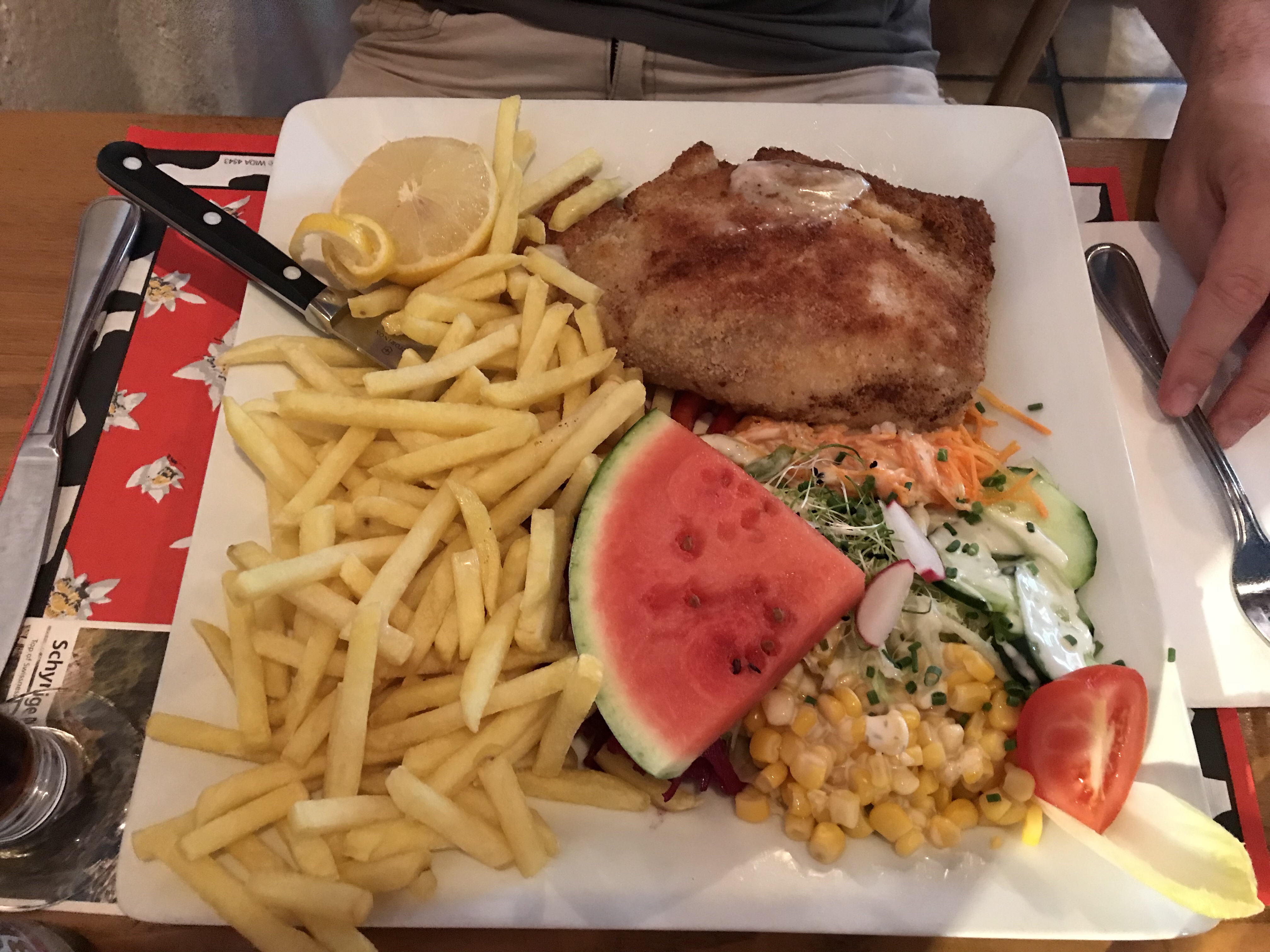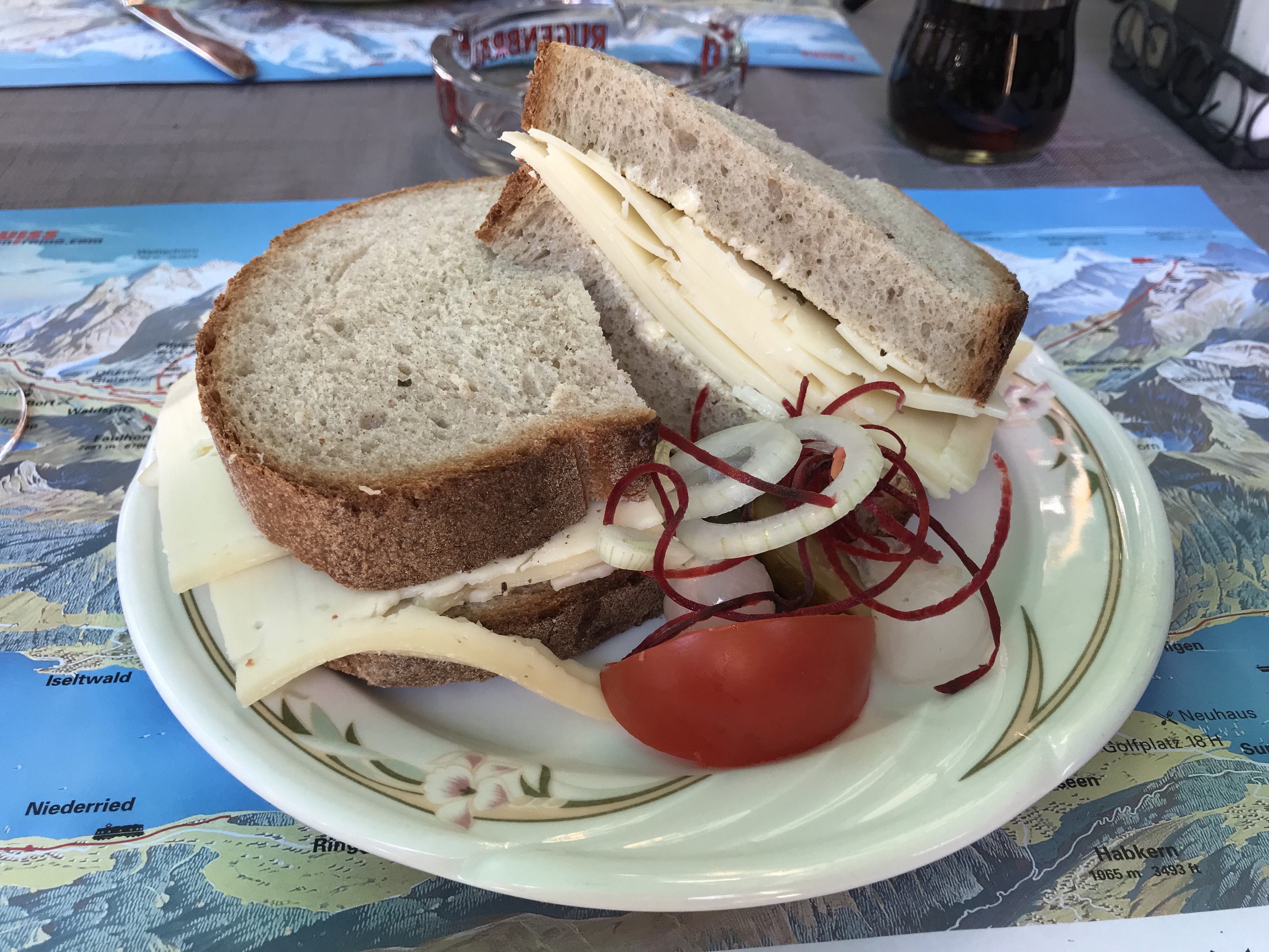 We hadn’t eaten much so we wandered up the main street to find some lunch. Everything looked expensive but we settled on a restaurant that did a cheap (ish) sandwich for 7CHF. But what sandwiches!
