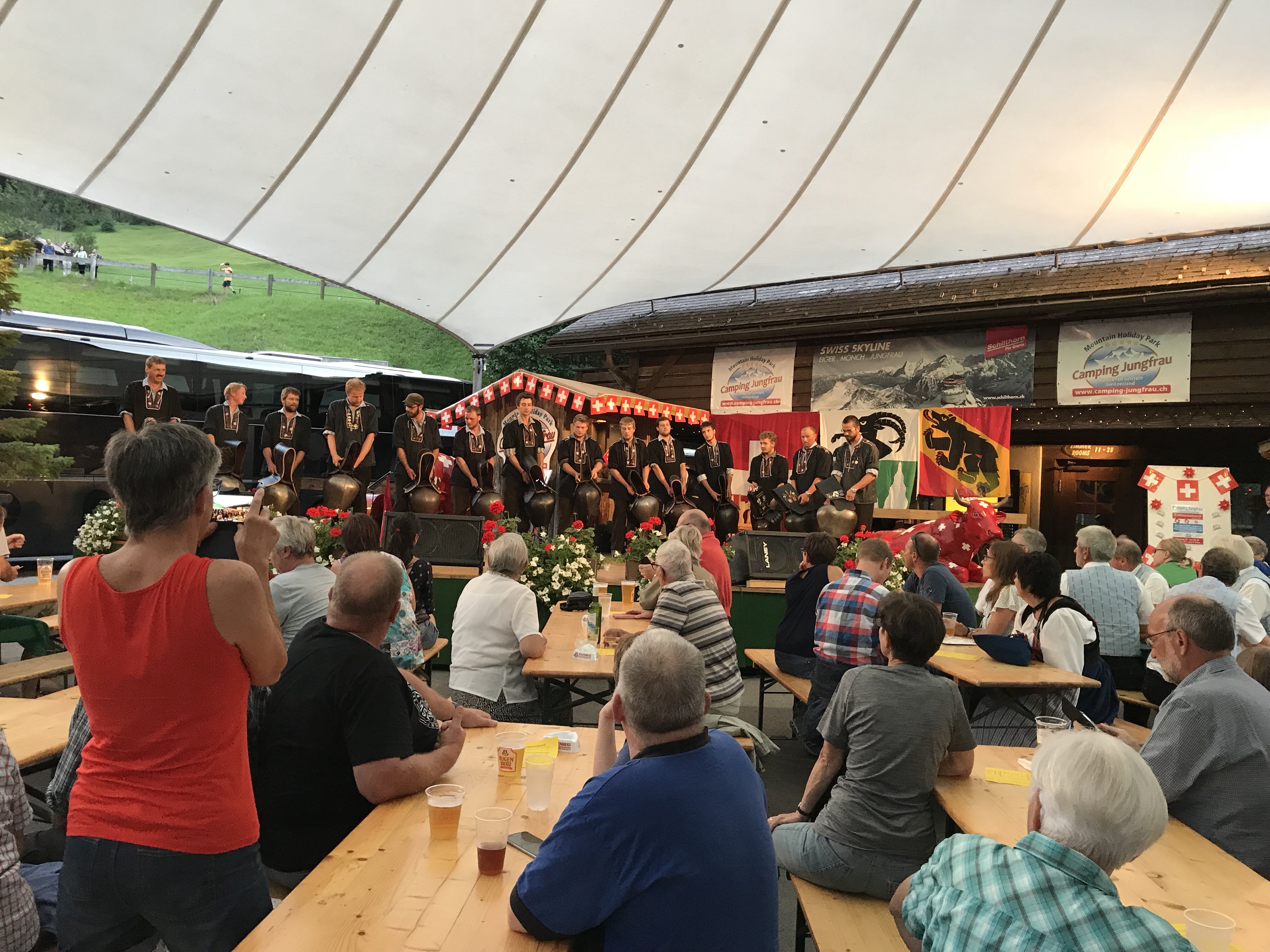 Tired of hauling backpacks full of clothes around, we decided to head back to Lauterbrunnen and ended up having a nap, but not before seeing a noticeboard advertisement for some traditional folk entertainment at the local campsite. That was our evening sorted!