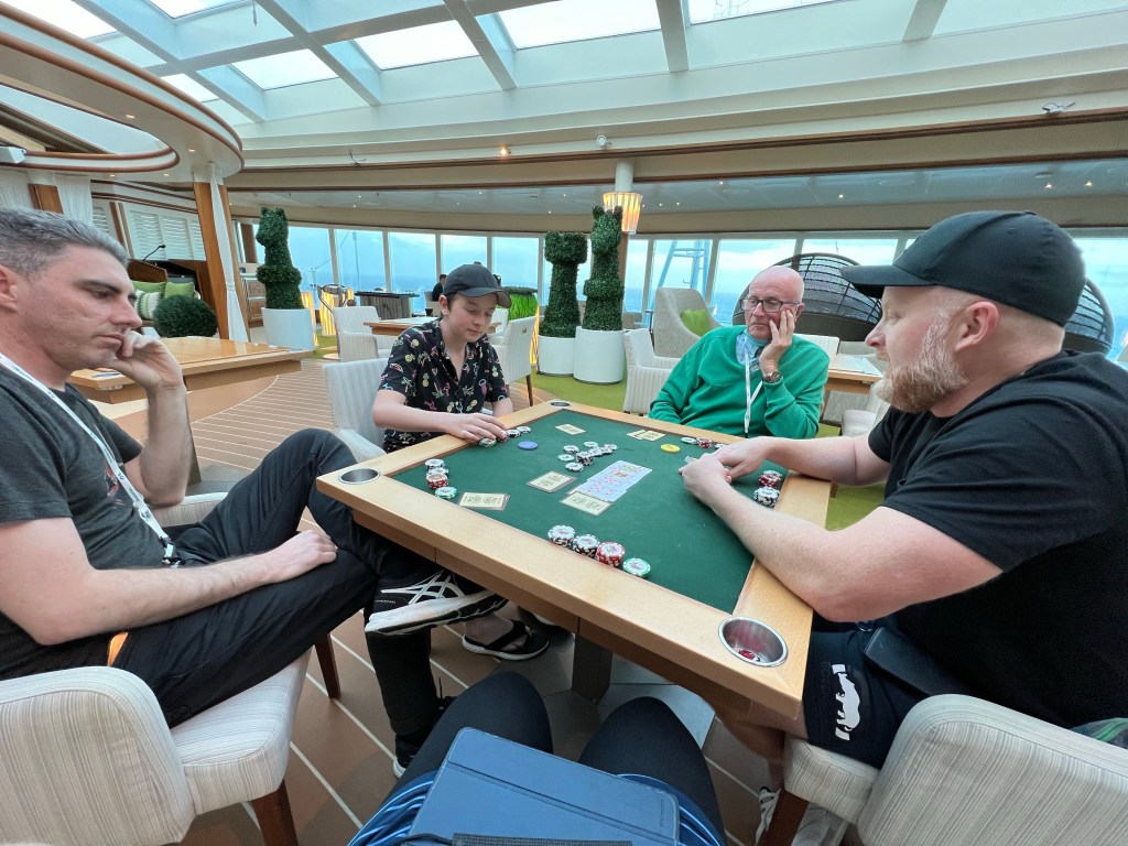 Luke and I finished the evening watching a rock violin show that was quite entertaining. The violinist was from Wales and had been working on cruise ships for 22 years. I have no idea how cruise ship work is perceived in the music industry, but that seems like a really long time. He said that featured musicians get to bring friends and family with them on cruises… I wonder if that means they have to share a room? I have so many questions about working on cruise ships but every staff member seems so busy that I don’t want to interrupt any of them to ask.