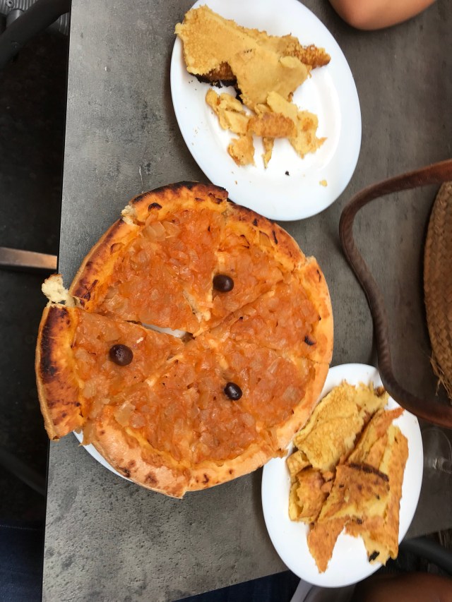 Then we walked on to buy wine and try socca, a local chickpea pancake, plus an onion tart, both of which are traditional street food.