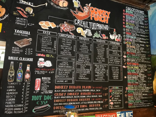 Next we walked to the Tavestere district for lunch. I found a little sandwich shop called ‘Donkey Punch’ (I will always be a sucker for a weird name) and I had a salad with pork and Luke had a sandwich with pork. Roast pork is a specialty of the region and the shop also did a great range of pickled and marinated salad ingredients.