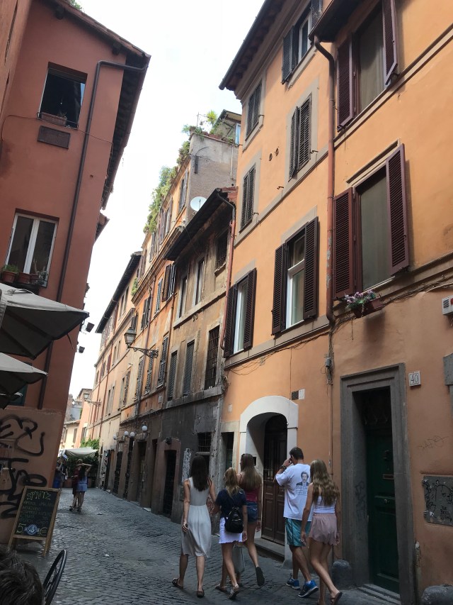 Our first full day in Rome was up to me to program so I set the alarm for 6:30 so we could get out and about before the city was too hot. Even though it only officially has climbed to 32 degrees it feels much hotter when the sun is radiating off buildings and cobblestones.