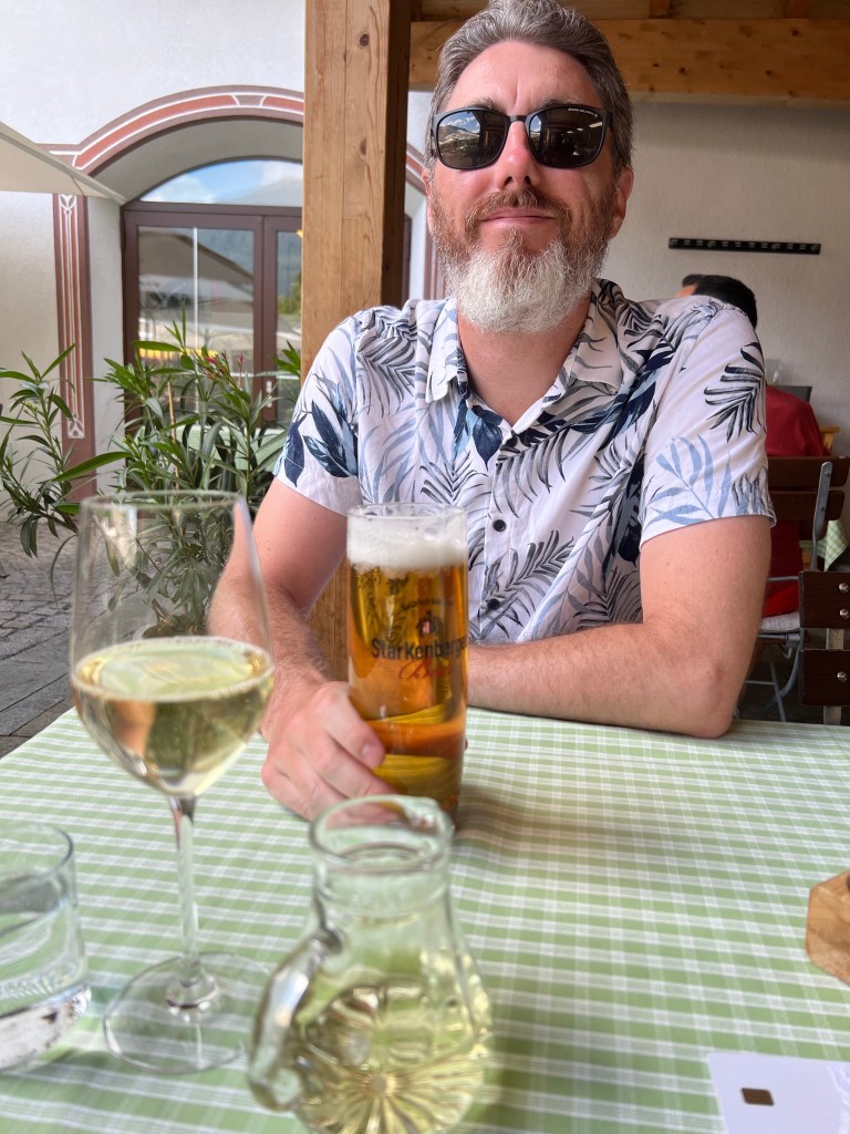 We had one wine tasting before lunch, where we sat outside in the garden of Juniper Winery, where an enthusiastic Englishman told us each wine was excellent. None of them really took my fancy, but it was a beautiful place to start our day’s drinking.